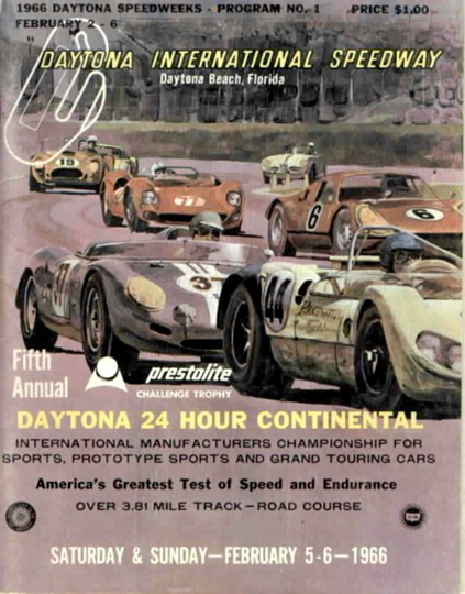 It is to Mr. France's credit as an organizer, and a very dynamic one at that, to have pulled off this hattrick at the last moment and gotten the impressive list of entries which turned up. Even though Daytona counted as the first race towards the 1966 Manufacturers' GT Championship, Ferrari abstained from officially entering and many and varied theories were put forth in attempted explanation. Whether he felt that his '66 cars weren't as yet ready, perhaps thought that running both at Daytona and Sebring as too expensive and unrewarding with regard to points towards the championship, or just felt antipathetic to the track, we shall never really know.