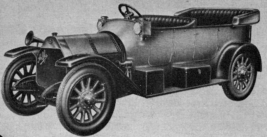 The factory was moved to Portello and the company reformed under the title "Anomina Lombarda Fabbrica Automobili," hence the abbreviated "Alfa". At this stage the company's products were known as A.L.F.A. and were distinguished by a badge, the left half of which showed the cross of St. George and the right half, a coiled serpent; this symbolized the Saracen Red Ensign, which had been captured by a Milanese force during the Crusades. In 1910 the company produced two new models, the 15/20 touring car, with a 4-cylinder side-valve engine of 2,413 cc (80 x 120 mm), a 4-speed gearbox and open coachwork and the basically similar 20/30 model with 4,084 cc (100 x 130 mm) engine. Cars were entered for the Targa Florio in 1911 and 1912, but retired with engine trouble both years. The range was supplemented in 1913 by the even larger 40/60 with an engine of 6,082 cc (110 x 160 mm) in the same chassis and the following year a sporting version of the 20/30 was marketed. A 4t-litre Grand Prix car with a 4-cylinder engine of 100 x 143 mm was also built in 1914, but it is not known to have achieved any success.