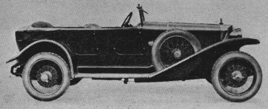 A much better car, the RLT 21/70 was also marketed in 1923; this had a 6-cyliflder 2,991 cc (75 x 110 mm) push-rod ohv engine, developing 56 bhp at 3,200 rpm and a top speed of around 70 mph. Later the same year a faster version, with more sporting inclinations as added. This was the RLS, with a shorter wheelbase, the engine bored out to 76 mm, twin Solex carburettors and developed 71 bhp at 3,500 rpm. It was a very pleasant and fast car, with excellent road manners: but like its contemporary, the Lancia Lambda, the gear ratios were unsuitable for British roads; so the British concessionaires were obliged to offer closer ratio constant mesh pinions for this model and its immediate successors. An RLS model was driven by Antonio Ascari into second place in the 1923 Targa Florio, but the race was won by an old 20/30 model driven by Sirocci. In 1925 the RL Super Sports 22/70 with power output raised to 83 bhp at 3,600 rpm was introduced and this had a top speed of over 80 mph. It would accelerate from 10 to 60 mph in third gear in 14 seconds and was capable of 65 mph in this ratio. The RLSS was distinguished by a most imposing V-shaped radiator. Prices in the UK ranged from £695 for the bare chassis to £995 for the special sports tourer. Some examples intended for competition work had a seven bearing crankshaft and raised compression ratio and there was also produced in small numbers a 4-cylinder 1,996 cc version known as the RM.