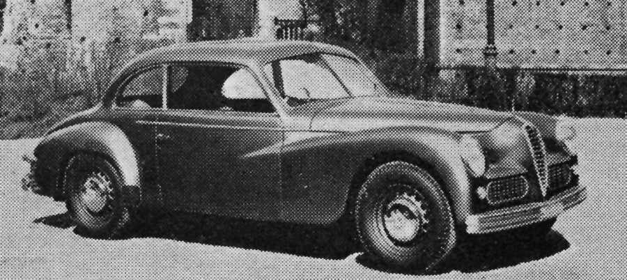 Although the 2500 model remained in production until 53, it was joined and eventually superseded by the 1900, which was introduced for the 1951 season. This was designed by Alessio and had a 1,884 cc (82.55 x 88 mm) 4-cylinder chain-driven twin overhead camshaft engine developing 80 bhp at 4,800 rpm. The 1900 was a sporting saloon, very much in the modern idiom, with integrally constructed steel body and chassis. Front suspension was by coil springs and wishbones and at the rear there was a rigid axle on coil springs and located by a Panhard rod. The standard body was a 4-door 5-seater saloon, but there were also separate-chassis versions available, the "1900L," which was mechanically identical with the standard saloon and the" 1900C," which had a 100 bhp motor and wire wheels. These were available with a wide selection of coachwork by such builders as Farina and Ghia, and as with most Italian chassis, a vast assortment of "one-offs" and specialist versions were built.