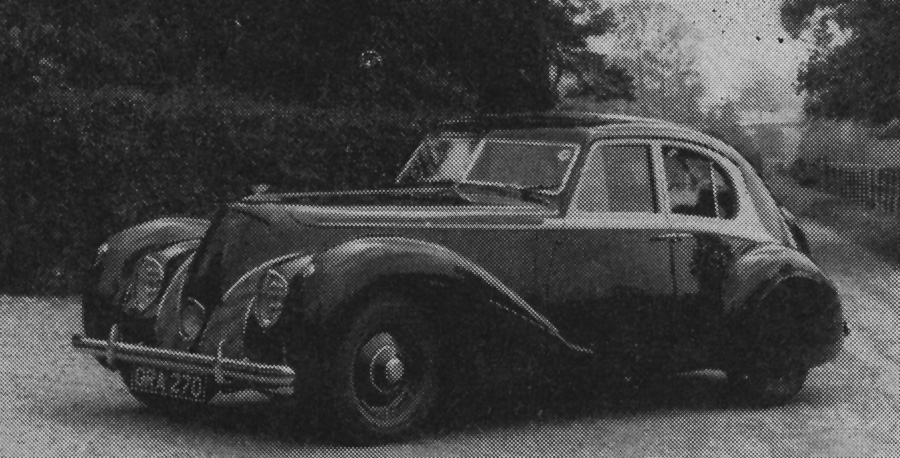 This was not the end of Bentley racing history, as in 1939 the Company produced a prototype car known as the "Corniche", with independent front suspension and a cruciform frame. One of these cars is illustrated, but the example referred to here had a cowled radiator, flowing wings and a tail reminiscent of the Lancia Aprillia. After lapping Montlhery in 1939 at 109 m.p.h. and Brooklands at 114 m.p.h., the car passed into the ownership of H. S. F. Hay. In 1949 and 1950 the Hay family combined a normal Continental tour with an entry at Le Mans. Co-driving with Tommy Wisdom in 1949, Hay finished 6th at 73.57 m.p.h., covering 1,766 miles and defeating two 3t-litre sports/racing Delahayes. In 1950 Hay and Hugh Hunter finished 14th, but another Bentley driven by E. R. Hall and T. G. Clarke was placed 8th. a fine performance for touring cars then eleven years old. Hay's car was still appearing in Club events as late as 1954.