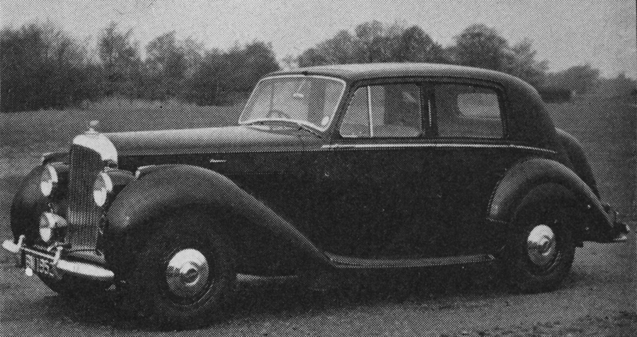 The post-war product was the entirely new Mk. VI, similar mechanically to the Silver Wraith Rolls-Royce, introduced in 1946. In fact the new cars were designed before the war and during the war years were extensively tested in a wide range of vehicles, including buses. The engine was a 6 cylinder 4,257 c.c. (89 X 114 mm.) design, the same capacity as the pre-war unit, but with overhead inlet and side exhaust valves. Other features included an aluminium cylinder head, a seven bearing counterbalanced crankshaft and carburation by twin S.U.s. The power output was not -disclosed, but it may be estimated at around 140 b.h.p. The very rigid chassis had a Io-ft. wheelbase and suspension was independent by coil springs and wishbones at the front, while at the rear there was the usual axle and semi-elliptic springs. As before there were mechanical servo brakes, with hydraulic operation at the front and mechanical at the rear. For the first time the Bentley was offered with standard steel saloon coachwork, but the usual wide selection of body styles was offered by the British specialists.