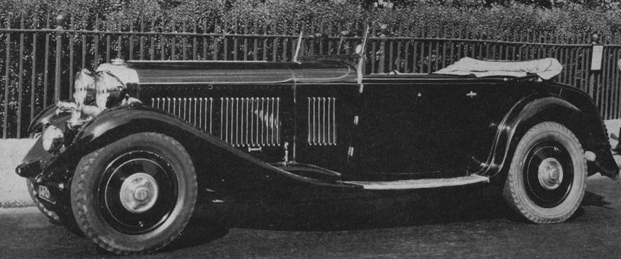 The history of the Bentley Company was marked by a constant struggle to make financial ends meet, but despite this and the unpropitious time for marketing an expensive and luxurious car, Bentley announced in 1930 the 8-litre, the model to crown all previous models. Very few were made before 193 I and the total production amounted to only 100 cars. Engine dimensions were 110 X 140 mm., giving for the six cylinders a capacity of 7,983 c.c. There was an entirely new gearbox, used also for the 4-litre model, and it was one of the first British cars to have a hypoid bevel rear axle. The engine developed 220 b.h.p. at 3,500 r.p.m. and there was a choice of a 12ft. or 13ft. wheelbase. With the usual heavy saloon coachwork, giving a dry weight of around 53 c.w.t., the 8-litre had a top gear range of 5-105 m.p.h., accomplished in the utmost smoothness and silence.