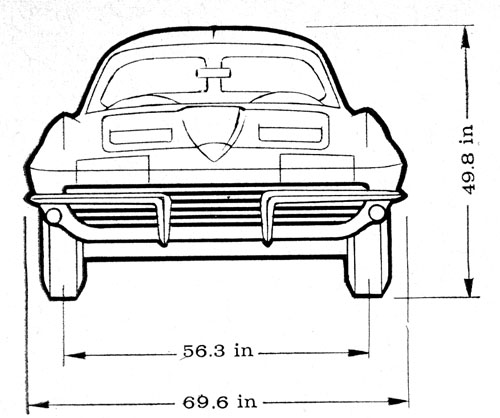 The result is a range of adjustment adequate to let our test drivers (ranging in height from five-seven to six-four) find a nearly ideal seating position. Maximum effective leg room "(to the accelerator)' is 43.7 inches and the maximum vertical height from the seat to the headlining is 33 inches. In view of the over-all height of only 49.8 inches, this is a good example of the care that has gone into designing the living quarters of the new Corvette Sting Ray.